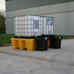 Suitable to store 2 x 1000 litre IBC containers, or items of similar size, these Double IBC Spill Pallets are manufactured from UV-resistant, recyclable polyethylene with a total sump capacity of 1130 litres.